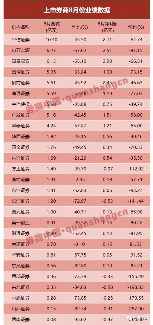 近年罕见!止不住的滑坡!27家券商公布8月业绩 净利下滑六七成比