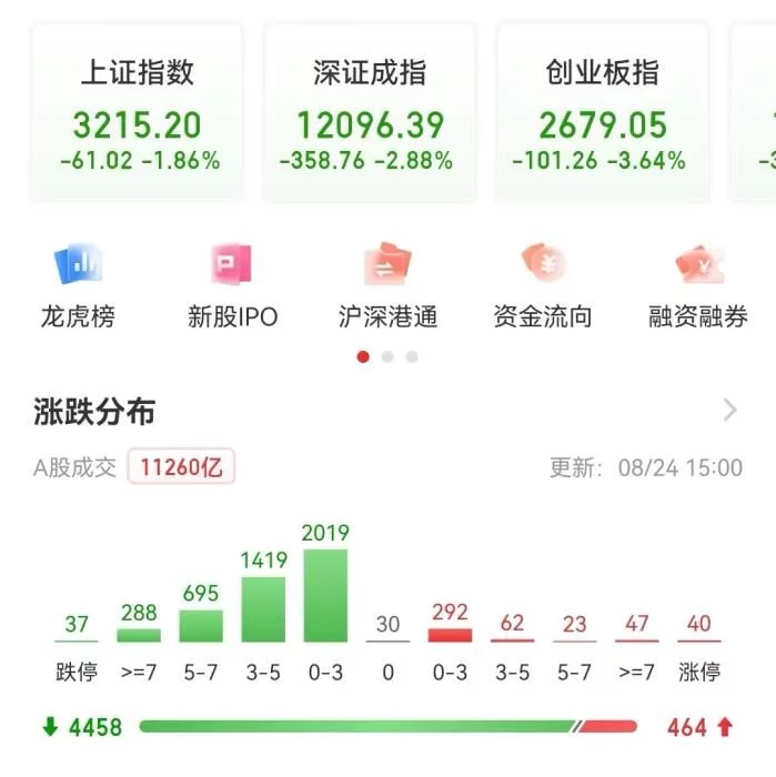 中新网8月24日电(中新财经记者 谢艺观)8月24日,A股三大股指盘中震荡下行,A股、基金接连登上热搜。