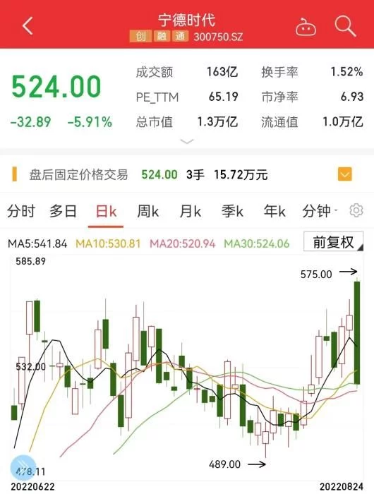 如,作为创业板权重股,宁德时代24日高开低走收跌5.91%报524元,成交额超160亿元,还拖累整个新能源板块走弱。