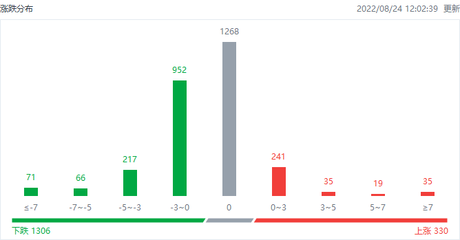 截至午间收盘,港股上涨330只,下跌1306只,收平1268只。
