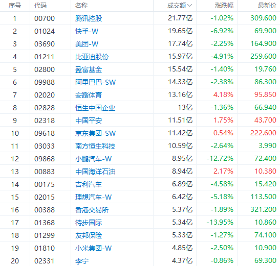 个股方面,$快手-W(01024.HK)$跌近7%。消息面,快手发布2022年第二季度业绩,总营收同比增长13.4%至217亿元。但同时,快手的总营收以及主要的营收来源线上营销服务收入,其增速均创下上市以来新低,其中,电商业务给快手带来的收入还十分有限,需要进一步提升变现能力。