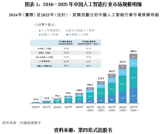 招股书显示,按照应用领域分类,中国人工智能行业可以分为决策类人工智能、视觉人工智能、语音及语义人工智能和人工智能机器人。