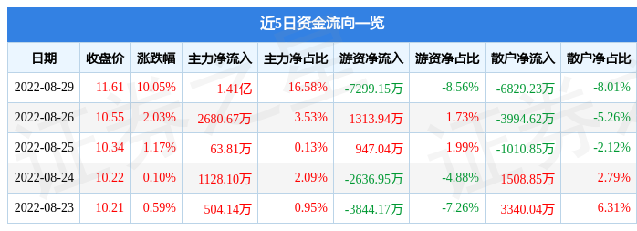 资金流向数据方面,8月29日主力资金净流入1.41亿元,游资资金净流出7299.15万元,散户资金净流出6829.23万元。