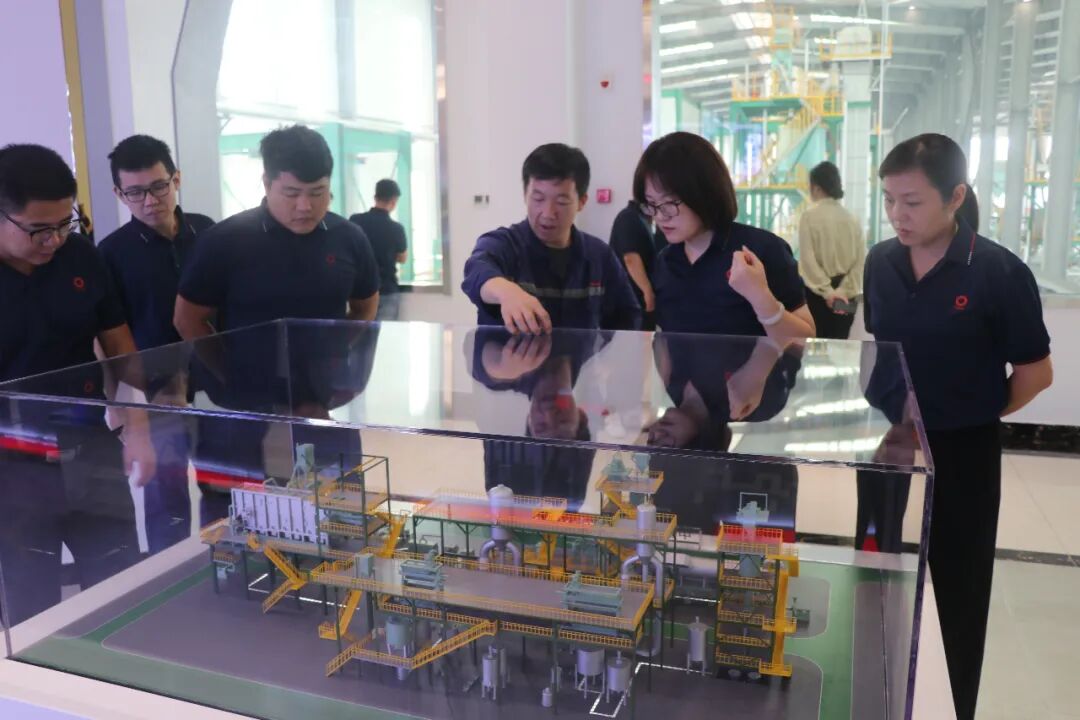 随后,参观代表们前往中国首创、世界领先的中国首台套CKB锂电池回收项目,学习了解通过对废旧锂电池进行溶解、压滤、蒸发结晶等工序处理提取有价金属锂的主体工艺技术,领略了充分利用水泥窑的高温低氧热源来减少能耗、热解有毒废气的绿色工业环保发展思路。