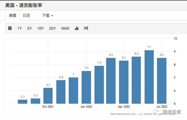 可以发现美7月的通胀率依然同比高达8.5%,虽然比6月看起来降了不少,但是如此高位对于美联储来说完全没有可以谈的上的利好,毕竟通胀率如果没有降到5%以下根本就没有任何减少加息的缘由可以解释。因此我相信未来一定会持续的强加息,至于会不会每次都加75个基点,就要看通胀率的下行速度了,从目前的情况来看,这种下行速度肯定是比较慢的,毕竟还有一些强通胀因素一直在影响着整体环境,比如国际油价极高。
