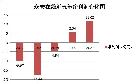 (图注:险企高参根据公开数据制作)2017年-2019年,众安保险分别实现归母净利为-9.97亿元、-17.44亿元、-4.54亿元;2020年受益于疫情给保险业带来的机遇和大众健康保障意识的提升,众安保险迎来上市以来首次盈利,当年扭亏为盈,实现归母净利润5.54亿元,2021年实现归母净利润11.65亿元。