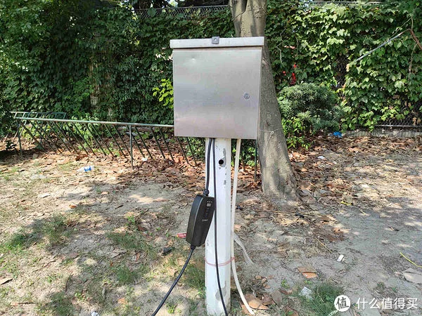 以自己单位其中一个充电箱为例,因为箱子的布局设计,像这中超大的随车充控制盒很难塞进充电箱里,但是足够长的小尾巴正好可以让随车充主体放置在箱子外面,加上产品自身达到IP66级防水防尘,完全不用担心日晒雨淋。