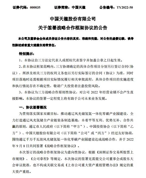 中国天楹:拟600亿元投建风光储氢氨一体化零碳产业园
