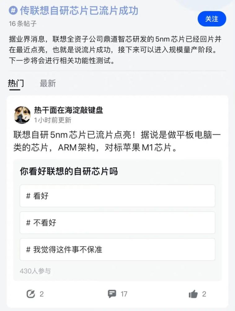 还有知情人士表示,联想的这个芯片团队规模已经超过三百人,并研已经发了2年之久。