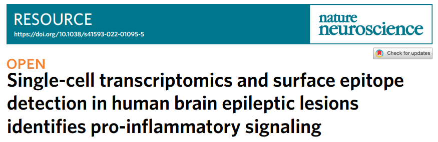 [3] Kumar P, Lim A, Hazirah SN, Chua CJH, Ngoh A, Poh SL, Yeo TH, Lim J, Ling S, Sutamam NB, Petretto E, Low DCY, Zeng L, Tan EK, Arkachaisri T, Yeo JG, Ginhoux F, Chan D, Albani S. Single-cell transcriptomics and surface epitope detection in human brain epileptic lesions identifies pro-inflammatory signaling. Nat Neurosci. 2022 Jul;25(7):956-966. doi: 10.1038/s41593-022-01095-5. Epub 2022 Jun 23. PMID: 35739273; PMCID: PMC9276529.