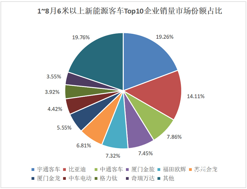 8月虽然是销售淡季,但6米以上新能源客车市场整体保持了稳中向好。