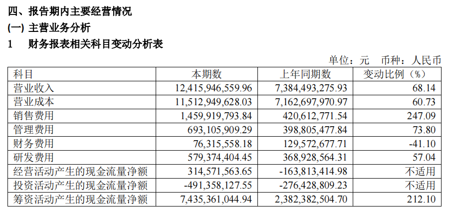 对此,赛力斯在财报中解释,营业成本的变动来自产品销售结构调整,单台成本较高的高端新能源汽车销量增加;高端新能源汽车广宣费用、销售服务费增加;随着高端新能源汽车业务量增加,人工成本、日常运营费用也在增加,同时,赛力斯的新产品研发费用也在增加。