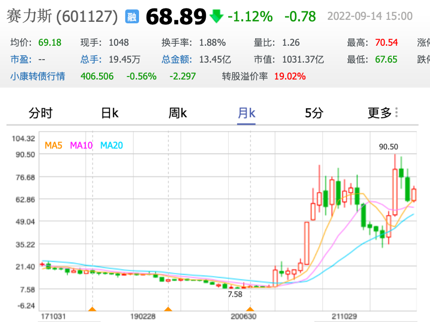 很多人把赛力斯股票的更名看作它放手一搏的尝试。在小康股份更名赛力斯(集团)的媒体说明会上,张兴海表示:如果这个时候宝马来跟我谈合资造车的事,我都不干,我会坚定不移地跟华为跨界合作。