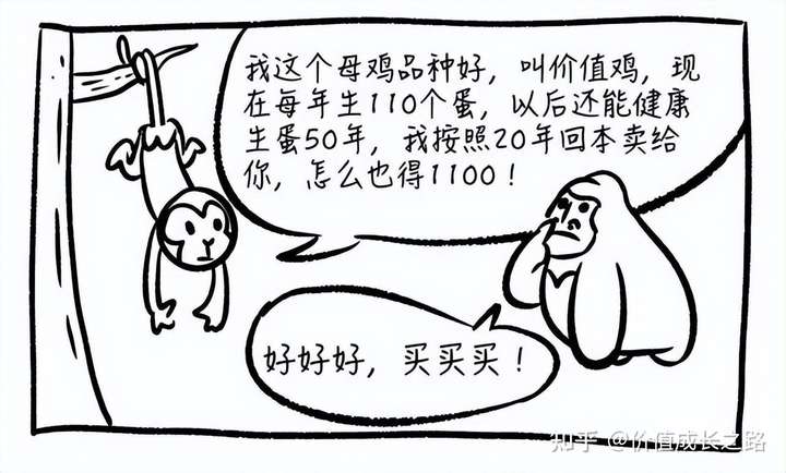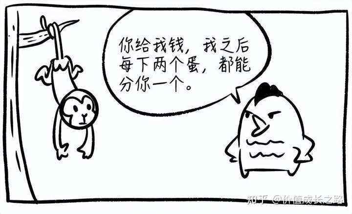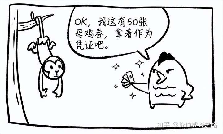 于是,猴子的50张母鸡券就被称为股份,而猴子的1000块钱投资,就叫按20倍市盈率入股。