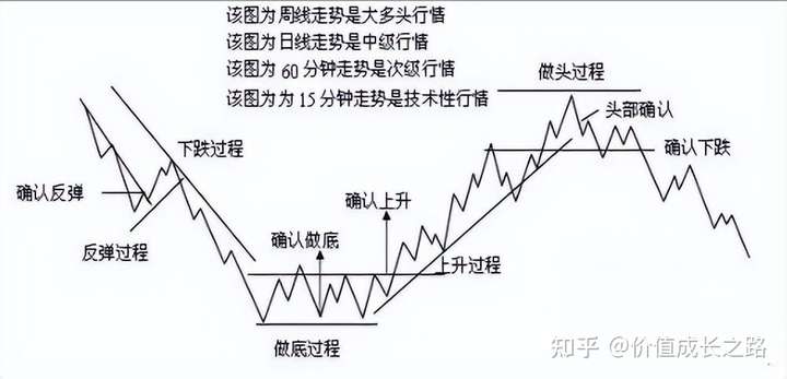 (1)市场和个股的运行有自身的规律,无论是哪种性质的行情,它都是按照下跌、做底、上升、整理、做头、再下跌的几个过程运行的。