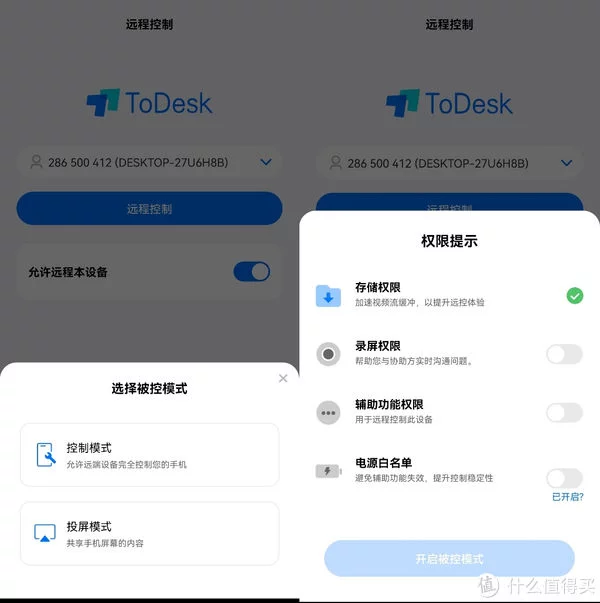 如果手机开启允许远程本设备,就会出现投屏模式和远程控制两个选项,可以根据自己的需要选择。