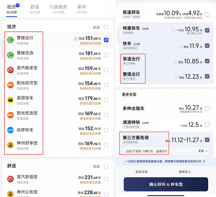2019年5月,美团打车相继在上海、南京等十五个城市上线了聚合模式,并且引入了首汽约车、曹操出行、神州专车等第三方出行平台;一个月后,滴滴也在原有自营平台的基础上加入了聚合模式,也引入了首汽约车、曹操出行等打车品牌。