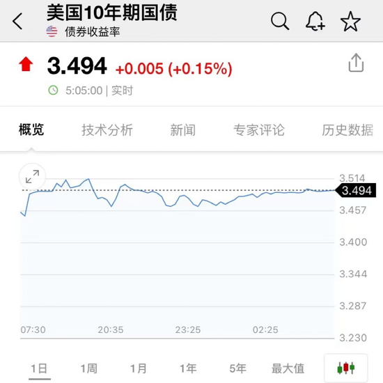 10年期国债收益率上涨4.7个基点,至3.49%,盘中升破3.5%至十一年新高。目前位于3.494附近。