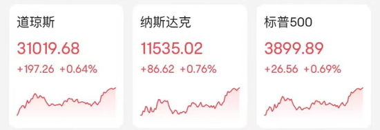 截至收盘,道琼斯工业平均指数上涨0.6%,至31019.68点;纳斯达克综合指数上涨0.8%,至11535.02点;标准普尔500指数上涨0.7%,至3899.89点。