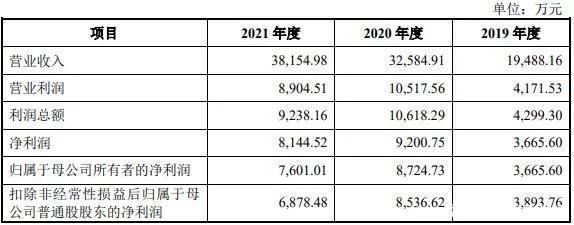 财务方面,于2019年度、2020年度及2021年度,逸豪新材分别实现营业收入分别约为1.95亿元、3.26亿元及3.82亿元;同期,归属于母公司所有者的净利润分别为3665.6万元、8724.73万元、7601.01万元。2021年度公司经营利润有所下降,主要系随着国家风电补贴逐步退坡,下游风机生产企业竞争有所加剧,2021年度公司销售的单价及毛利率相对较高的槽楔与层压制品、纤维制品、绑扎制品合计销售收入及占比下降;另一方面,受到原油市场价格大幅上涨的影响,公司主要原材料价格出现明显上涨,提高了相关产品生产成本。