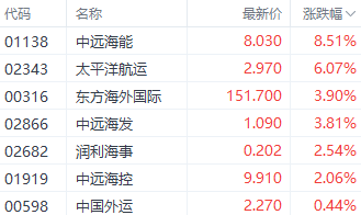 海运价格反弹港股航运股逆势走强中远海能涨超8%