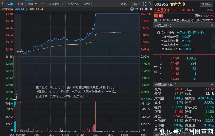 今日电子纸板块震荡拉升,全天涨幅2.70%。13只个股中,仅掌阅科技和莱宝高科飘绿;其余个股中,劲拓股份、亚世光电涨停,秋田微、汉王科技、飞凯材料等个股跟涨。