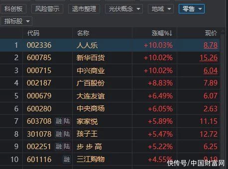此外,零售板块也受到资金追捧,人人乐、新华百货、中兴商业涨停。