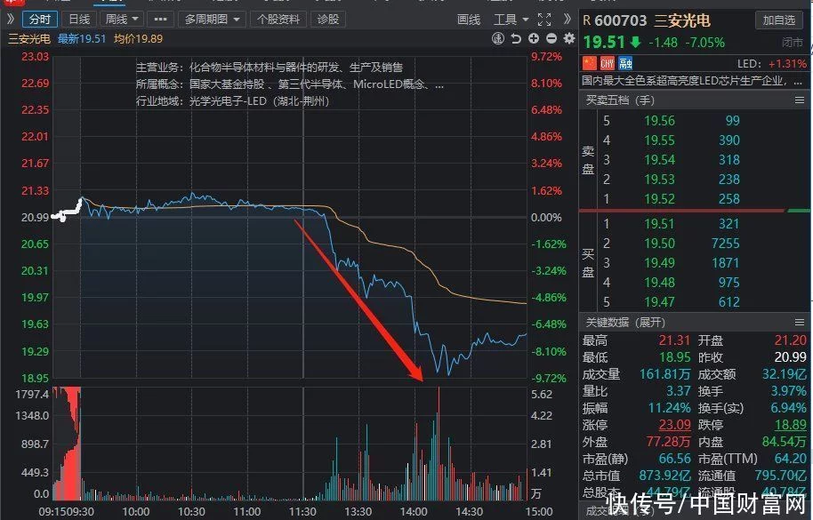 继千亿医美大白马爱美客闪崩后,今日又一白马股三安光电股价跳水,全天跌幅7.05%,盘中一度接近跌停。值得注意的是,从2022年9月15日至今日,三安光电已经4连跌,累计跌幅超18%。