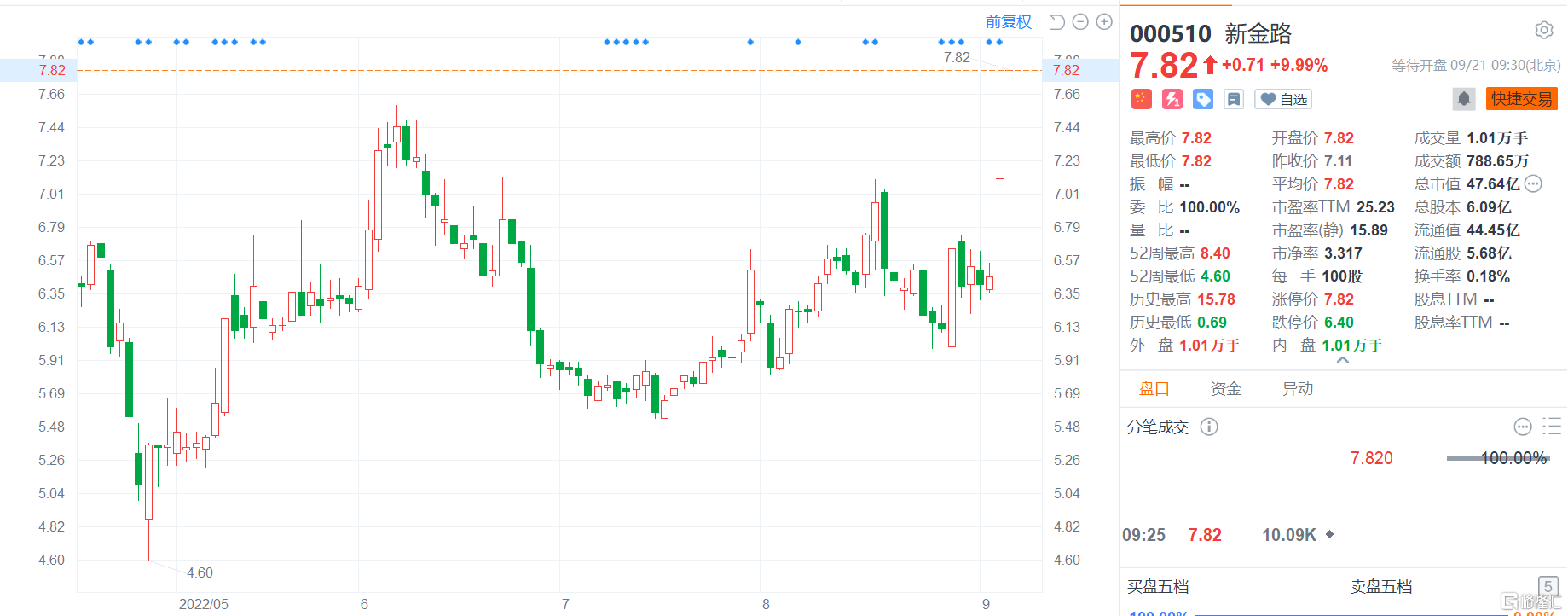 格隆汇9月21日丨新金路连续第二日涨停,报7.82元,总市值48亿元。9月19日晚间,新金路公告,公司已与蔡昱等8位天兵科技股东签署协议,拟通过发行股份及支付现金方式购买其合计持有的标的公司65.01%股权,同时将向公司控股股东、实际控制人刘江东及其一致行动人四川金海马募集配套资金。公司称,正在与天兵科技其他股东进行沟通,将努力实现对其100%股权的收购。通过本次交易,上市公司将置入盈利能力较强的优质资产,主营业务将拓展至军工电子新领域。