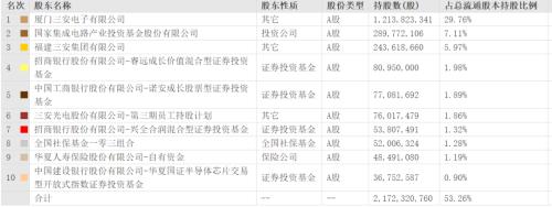 截至上半年末,前十大流通股东中,除三安电子和大基金外,持仓市值到亿元规模的有睿远成长价值混合A、诺安成长混合、兴全和润混合(LOF)、华夏国证半导体芯片ETF四只基金,以及社保、公司第三期员工持股计划和华夏人寿自有资金。