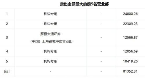 盘后龙虎榜数据显示,四家机构席位分别净卖出2.4亿元、2.23亿元、1.21亿元、1.04亿元,合计净卖出高达6.88亿元。