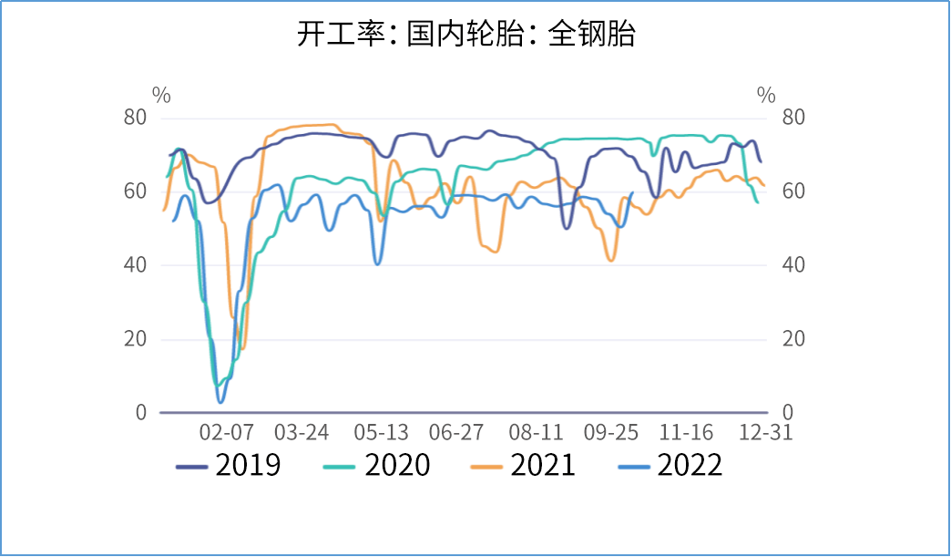 根据中国汽车工业协会发布的最新数据显示,8月份,我国汽车产销分别完成239.5万辆和238.3万辆,同比分别增长38.3%和32.1%,增幅比7月分别上涨6.8个百分点和2.4个百分点。1-8月份,全国汽车产销分别完成1696.7万辆和1686万辆,同比分别增长4.8%和1.7%。汽车销量增长主要来自乘用车市场,1-8月份,乘用车产销分别完成1480.3万辆和1465.5万辆,同比分别增长14.7%和11.7%。8月份,国内商用车产销分别完成23.8万辆和25.8万辆 同比分别增长3.1%和4%,这是自2021年4月份以来的首次同比双增长。商用车市场同比数据不再下跌,也给天然橡胶市场带来了较为积极地预期。不过需要注意的是,2021年8月份的商用车销量是当年最低销售月份,若后市需求回升被证伪,那么价格反弹预期就会受到挫折。从当前的全钢胎开工率水平来看,9月份需求有转好迹象,但天然橡胶总需求不足的问题暂时还没有得到显著改观。