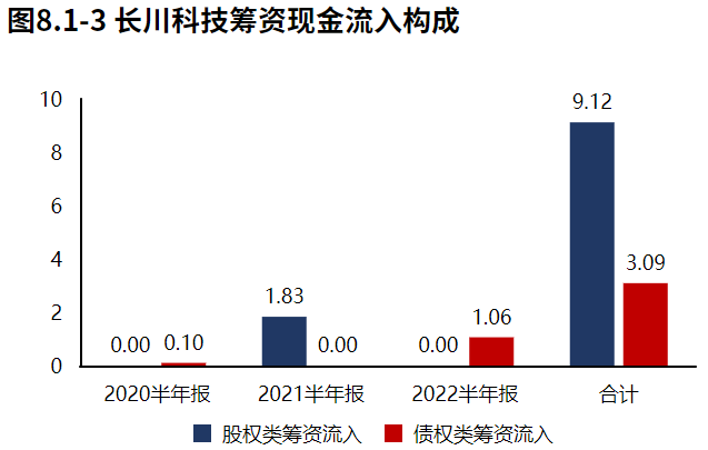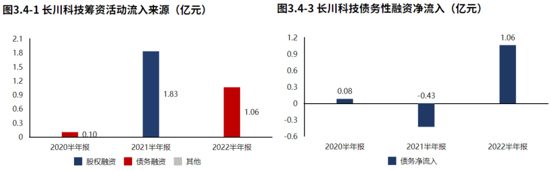 公司通过债权方式筹资,公司的生存发展仍对贷款有一定依赖。2022半年报长川科技筹资活动现金流入1.06亿元,全部为债权流入,公司的生存发展仍对贷款有一定依赖。