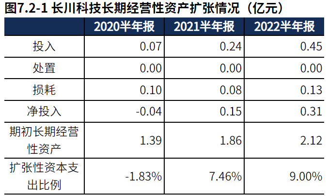 产能稳定。2022半年报长川科技产能投入0.45亿元,处置16.66万元,折旧摊销损耗0.13亿元,新增净投入0.31亿元,与期初经营性资产规模相比,扩张性资本支出比例9.00%。