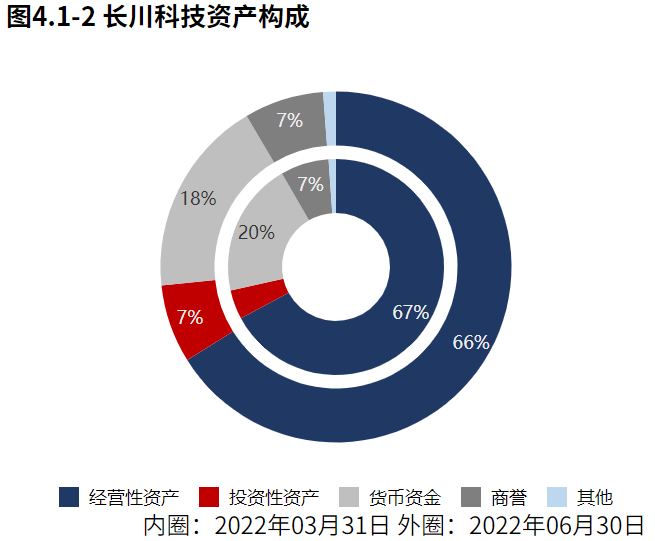 经营资产占比不高。从2022年06月30日的合并报表的资产结构来看,经营资产占比不高。
