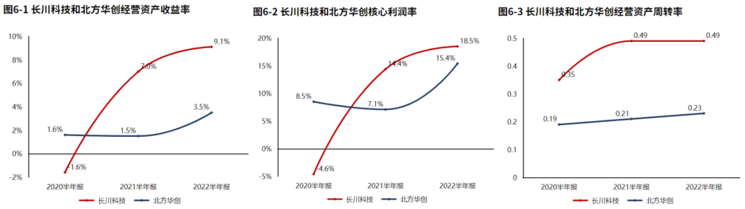 2022半年报长川科技经营资产报酬率9.14%。较2021半年报,经营资产报酬率增长2.09个百分点,增幅29.61%,经营资产报酬率有所改善。核心利润率18.50%。与2021半年报相比,核心利润率上升4.14个百分点,增幅达28.80%,经营活动盈利性改善。经营资产周转率0.49次,较2021半年报增加0.00次,增幅为0.63%,经营资产周转效率基本稳定。长川科技经营资产报酬率的改善来源于核心利润率和经营资产周转率的双重改善。