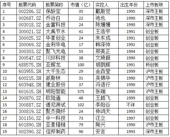 90后崛起,实控A股19家上市公司!年纪最小的才23岁,身份神秘