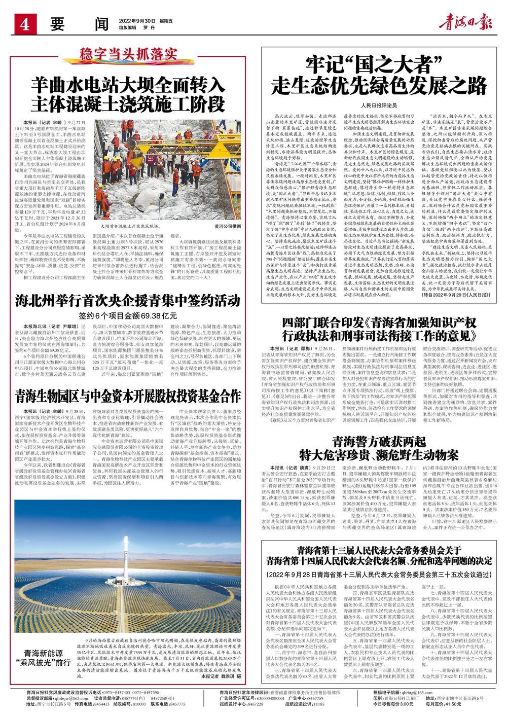 《青海日报》(2022年09月30日 第4版:要闻)