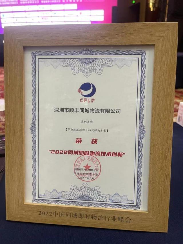 赋能茅台冰淇淋全链路配送,顺丰同城物流解决方案荣膺“技术创新”奖项