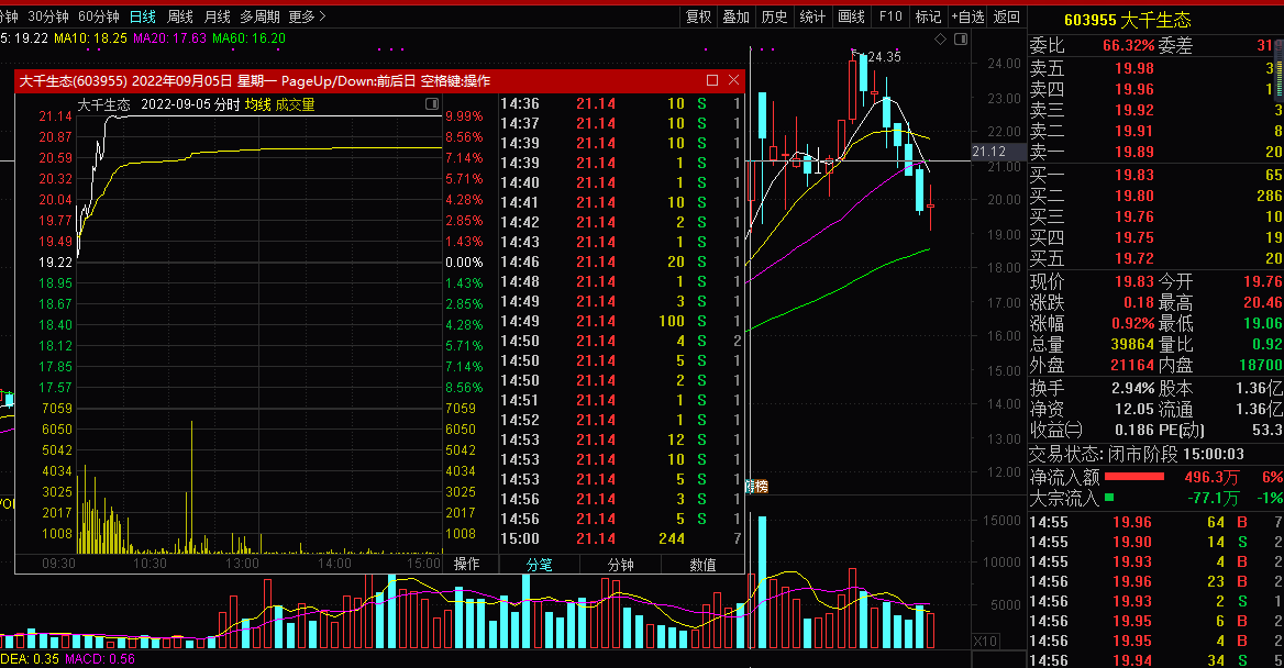 就在当天上午10点多,大千生态就已经封死涨停。从6月30日到9月5日,大千生态累计涨幅达到67.11%,而同期上证指数下跌5.09%。对于易主消息是否已提前泄露,外界也存在部分质疑。