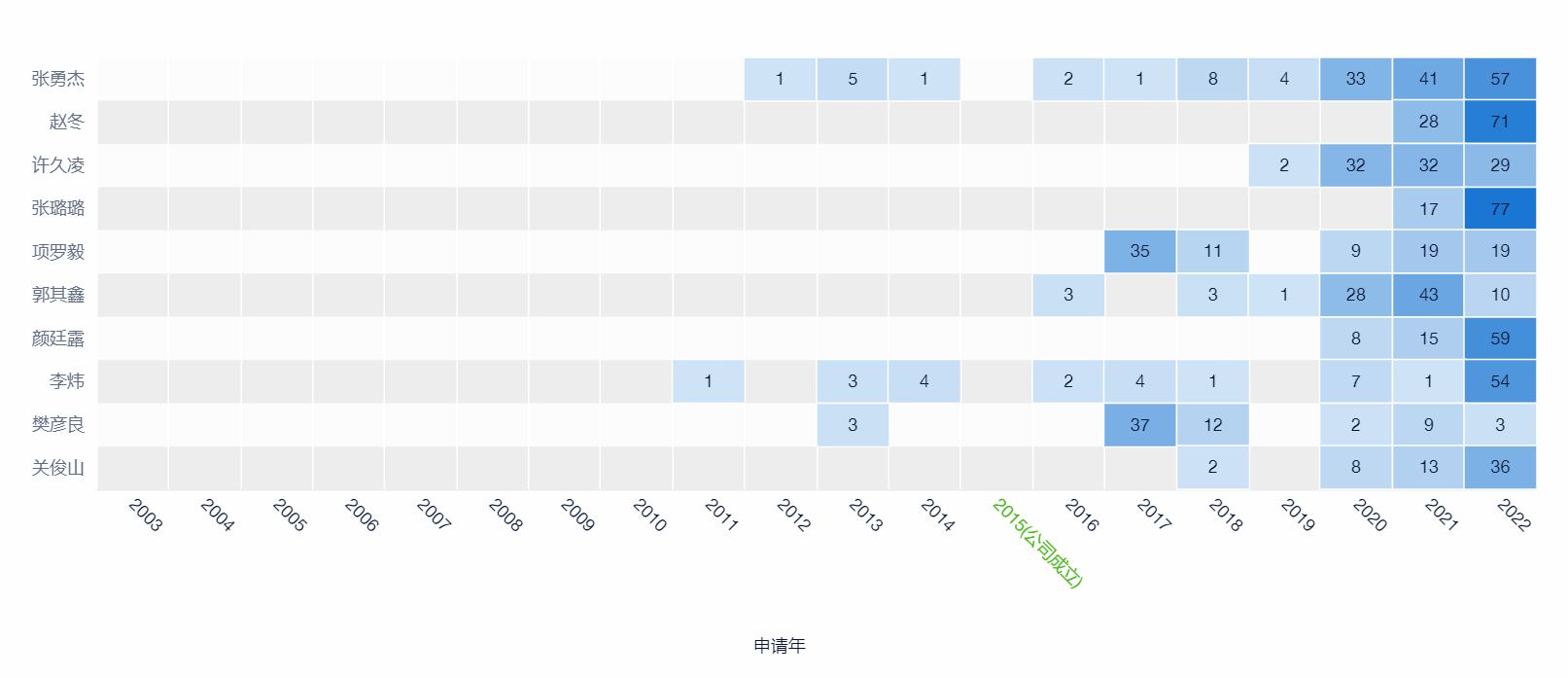 中创新航发明数量最多的发明人为张勇杰,发明153件专利。