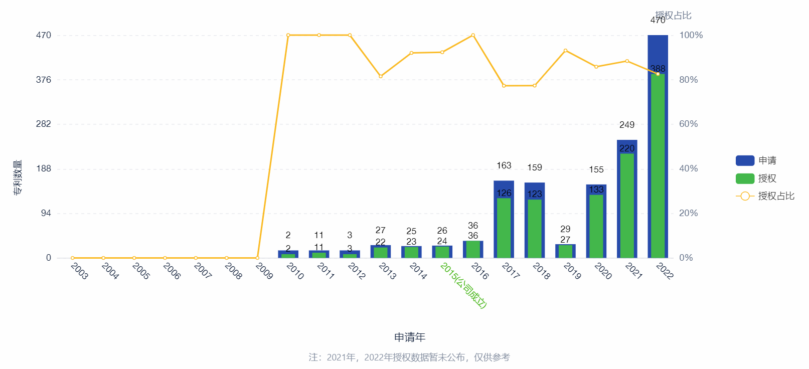 图-中创新航专利申请及授权趋势