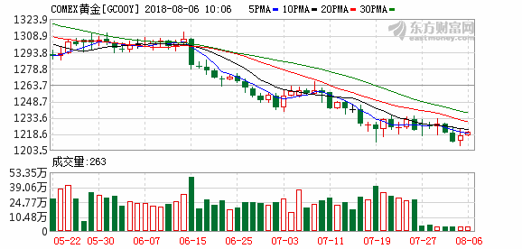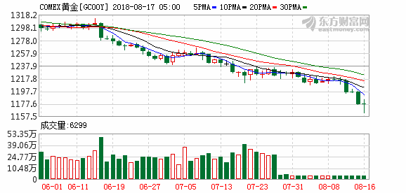 8月15日,现货黄金价格跌至逾18个月低点,因土耳其金融市场动荡带动美元触及逾13个月峰值。美元的走势受到了欧元下跌的支撑,后者受到了欧洲银行业者对土耳其曝险的拖累。 周三(8月15日),现货黄金价格跌至逾18个月低点,因土耳其金融市场动荡带动美元触及逾13个月峰值。美元的走势受到了欧元下跌的支撑,后者受到了欧洲银行业者对土耳其曝险的拖累。 截至发稿,现货黄金跌0.51%至1188.04美元,稍早触及2017年1月27日以来最低位1186.58美元;COMEX期金主力合约下挫0.48%至11