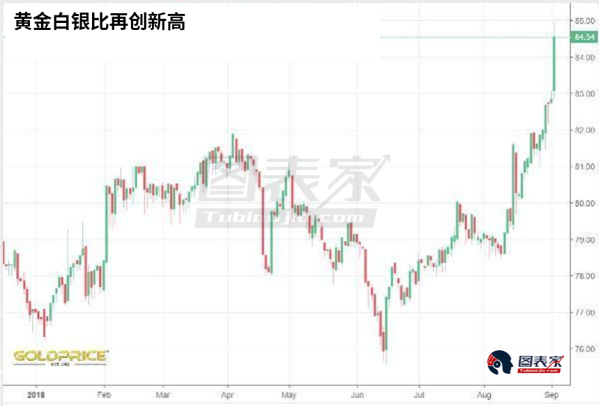 此外,黄金,尤其是白银再次遭受重创。现在的黄金白银比又回到了2008年的水平之上。
