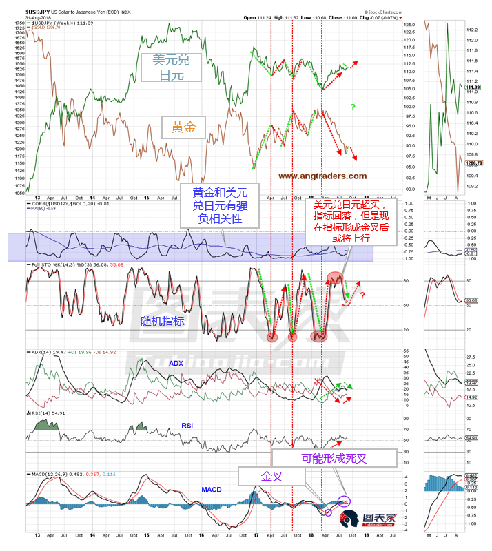 美元兑日元和黄金有极强的负相关性。从技术面来看,美元兑日元上涨的概率较大,这意味着黄金或将重回下跌趋势。